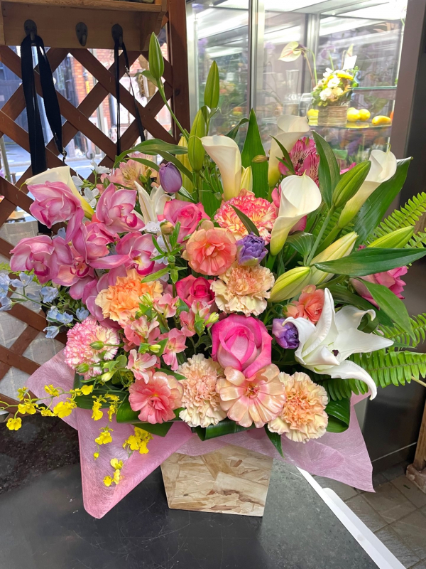 お母様のお誕生日祝いにご依頼いただきたアレンジメントです。
